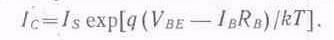 В этом асимптотическом выражении значение параметра п обычно лежит в диапазоне от 1 до 2. Более того, значение параметра Iо превышает значение соответствующего множителя в экспоненциальном выражении, описывающем данную зависимость в средней части диапазона напряжений смещения эмиттерного перехода.