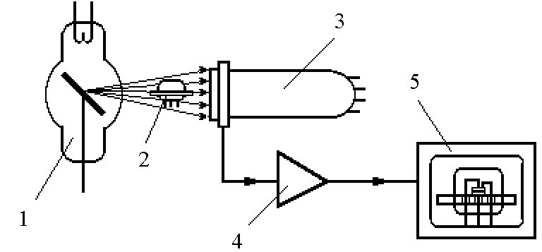 1 - рентгеновская трубка; 2 - контролируемый прибор; 3 - рентгеновидикон;