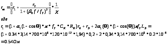 Рассчитаем активную составляющую входного сопротивления транзистора: