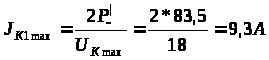 P>~>>max>=26.7кВт J>н>=155А S=65мА/В P>адоп>=25кВт