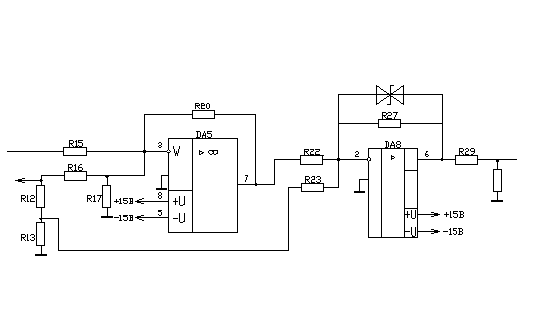 Для синтеза такой характеристики используем ограничитель на ОУ типа КР140УД8А.