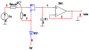 R3 - резистор на виході компаратора. Компаратор ввімкнений по схемі з ЗЕ.
