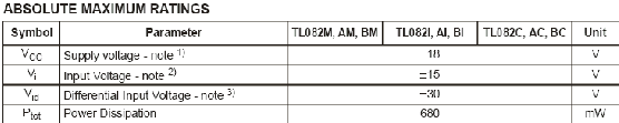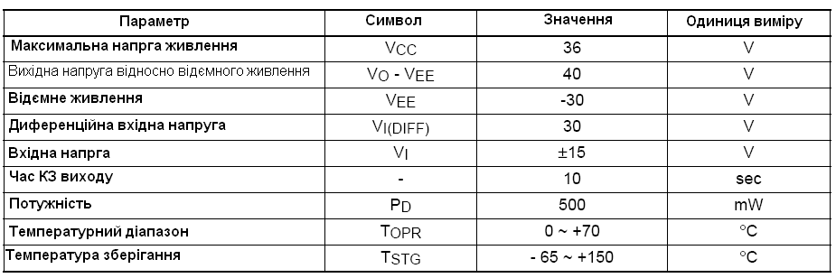 Будемо використовувати одно полярне живлення +5В. Далі приведу максимальні значення вхідних та вихідних сигналів: