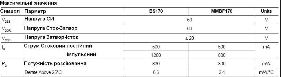 Я вибрав польовий транзистор з індукованим каналом BS170. Це транзистор N каналу. Будем використовувати транзистор у корпусі TO-92. Він задовольняє нас за усіма вимогами