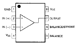 Було вирішити використати LM311 від виробника Fairchild. Будемо використовувати версію компаратора у DIP-8 корпусі. Ось схема компаратора: