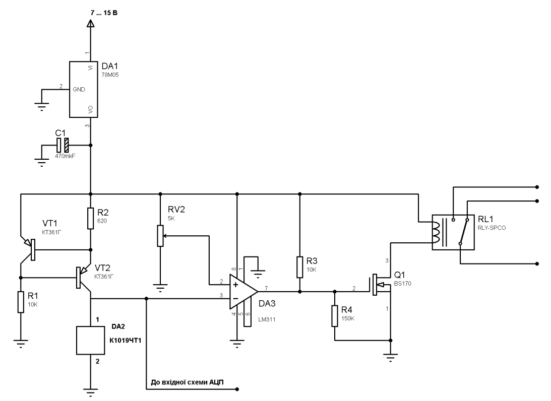 Отже навантаження буде керуватися через реле, що в свою приєднується через буфер до компаратору.