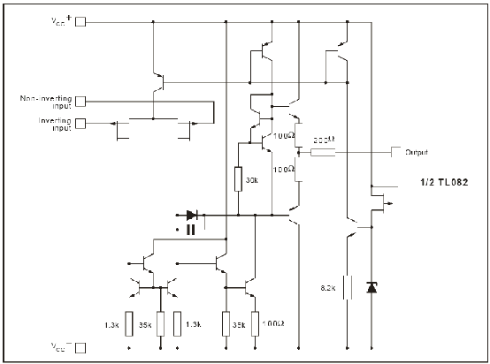 >Вхідний каскад цього ОП зроблений на польовому транзисторі>> (>>JFET>>).>
