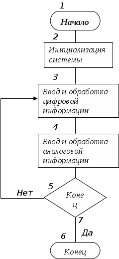 Микропроцессорная система работает по следующему алгоритму(Рисунок 1):