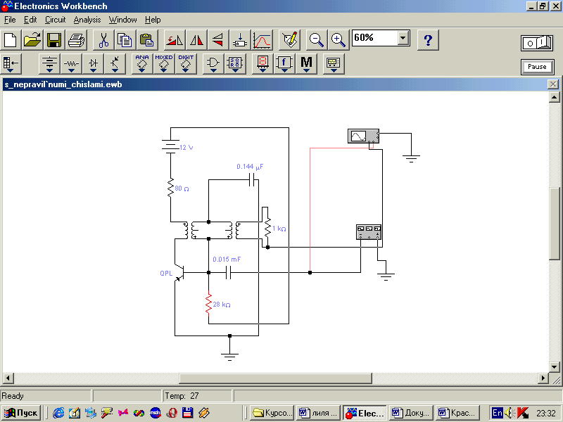 Во время работы над данным курсовым проектом были углублены знания по аналоговой электронике, в частности по блокинг-генераторам. Были приобретены навыки работы с программой Workbench, моделирующей работу электрических цепей.