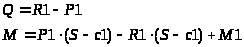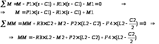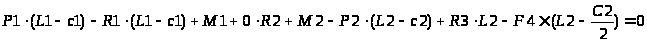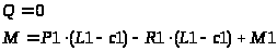M = P1 * (L1 - C1) - R1 * (L1 - C1) + M1 + M2 + P2 * (T - L1 - L2 + c2) + q4* * (T - L1 - L2 + c2) * (T - L1 - L2 + c2) / 2
