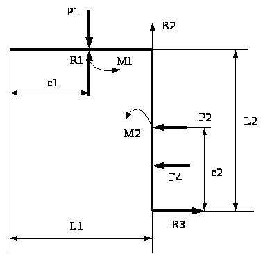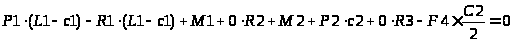 MM = P2 * (L2 - c2) - M2 - R3 * L2 + F * (L2 - c2/2)