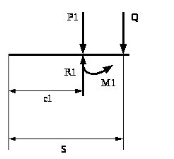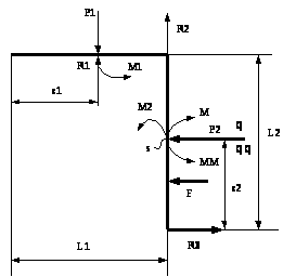 Построить математическую модель расчета опорных реакций жесткого стержня с тремя опорными узлами и определение внутренних усилий, поперечной силы Q и изгибающего момента М, возникающих во внутренних сечениях стержня под действием нагрузки. Разработать алгоритм и составить программу вычисления опорных реакций и распределения вдоль оси стержня внутренних усилий.