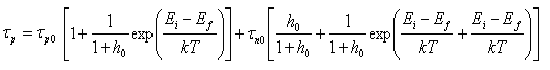 В этом выражении E>f>- уровень Ферми; E>i> = (Е>с>- E>v>)/2 - собственный уровень; h>0> = n/n>0>, где n - средняя плотность инжектированных электронов; n - равновесная плотность электронов. Собственные времена жизни соответственно дырок и электронов.