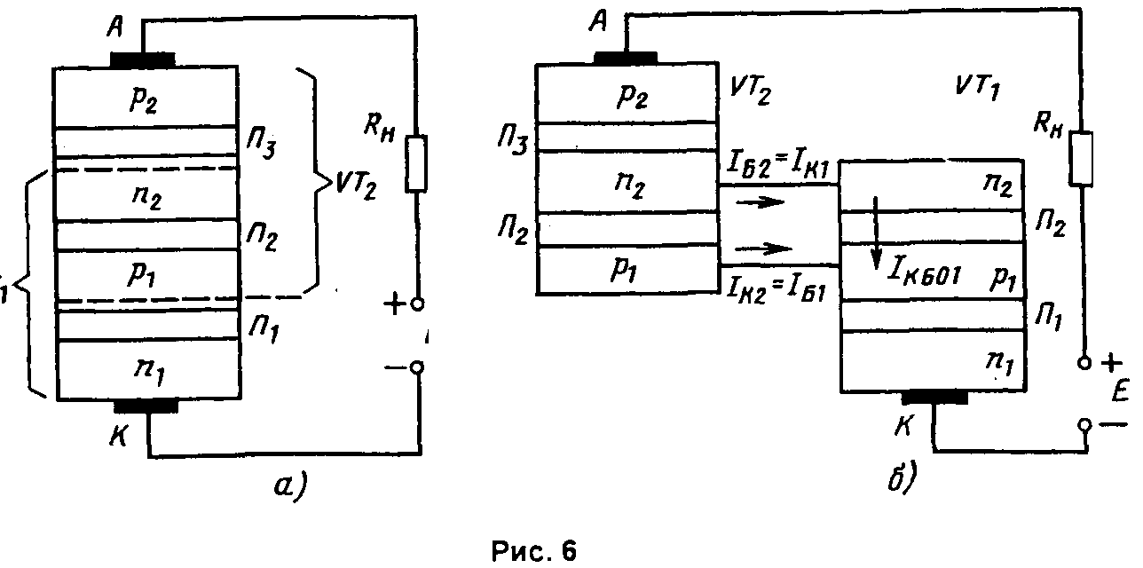 Для тиристора, имеющего шунты в катодном эмиттере, можно с достаточной точностью предположить, что прямое и обратное напряжения пробоя у него приблизительно равны.