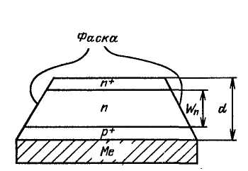 Диффузионный метод изготовления n-р-nерехода основан на том, что атомы примеси диффундируют в основной полупроводник. Примесное вещество при этом обычно находится в газообразном состоянии. Для того чтобы диффузия была интенсивной, основной полупроводник нагревают до более высокой температуры, чем при методе сплавления. Например, пластинку кремния n-типа нагревают до 900 °С и помещают в пары алюминия. Тогда на поверхности пластинки образуется слой кремния р-типа. Изменяя длительность диффузии, можно довольно точно получать слой нужной толщины. После охлаждения его удаляют путем травления со всех частей пластинки, кроме одной грани. Диффузионный слой играет роль эмиттера. От него и от основной пластинки делают выводы. При диффузионном методе атомы примеси проникают на относительно большую глубину в основной полупроводник, и поэтому n-р-nереход получается плавным, т. е. в нем толщина области изменения концентрации примеси сравнима с толщиной ООЗ.