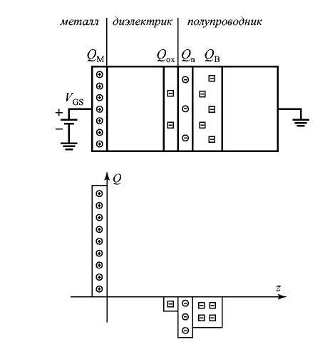 Рисунок 1.9 - Расположение зарядов в МДП-транзисторе.