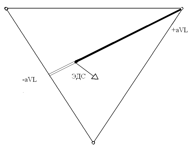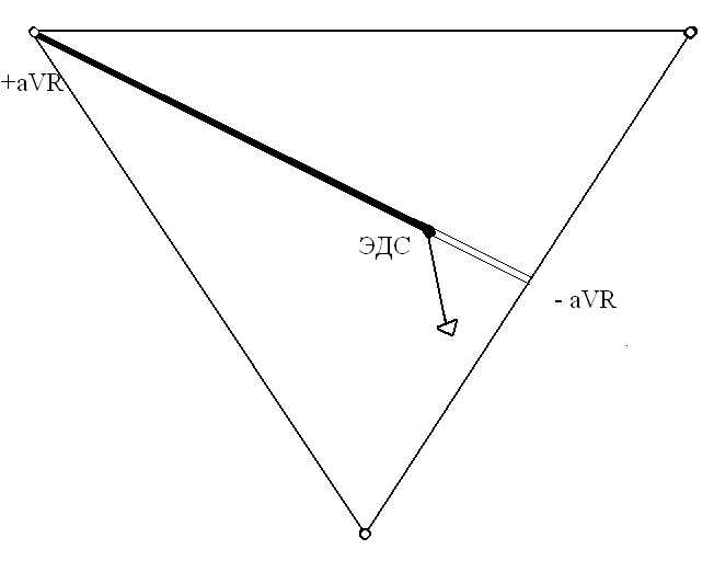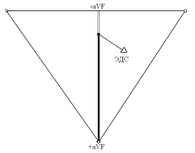 На рис.1.1 показан треугольник Эйнтховена и расположение трех осей усиленных однополюсных отведений от конечностей.