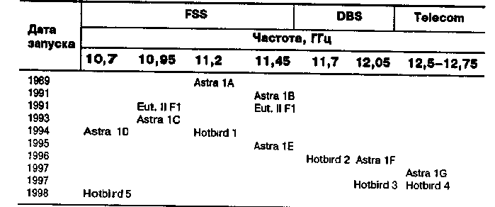 Технические данные спутников ASTRA приведены в табл. 1.1