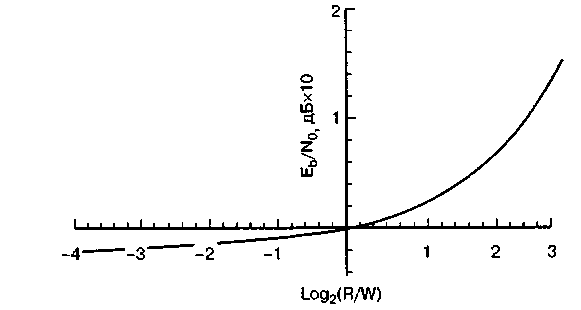 6. Область ограничения полосы пропускания лежит справа от оси E>b> /N>0> (R > W).