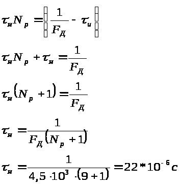 После определения частоты дискретизации и числа зарлядов двоичного кода можно определить длительность импульса кодовой последовательности: