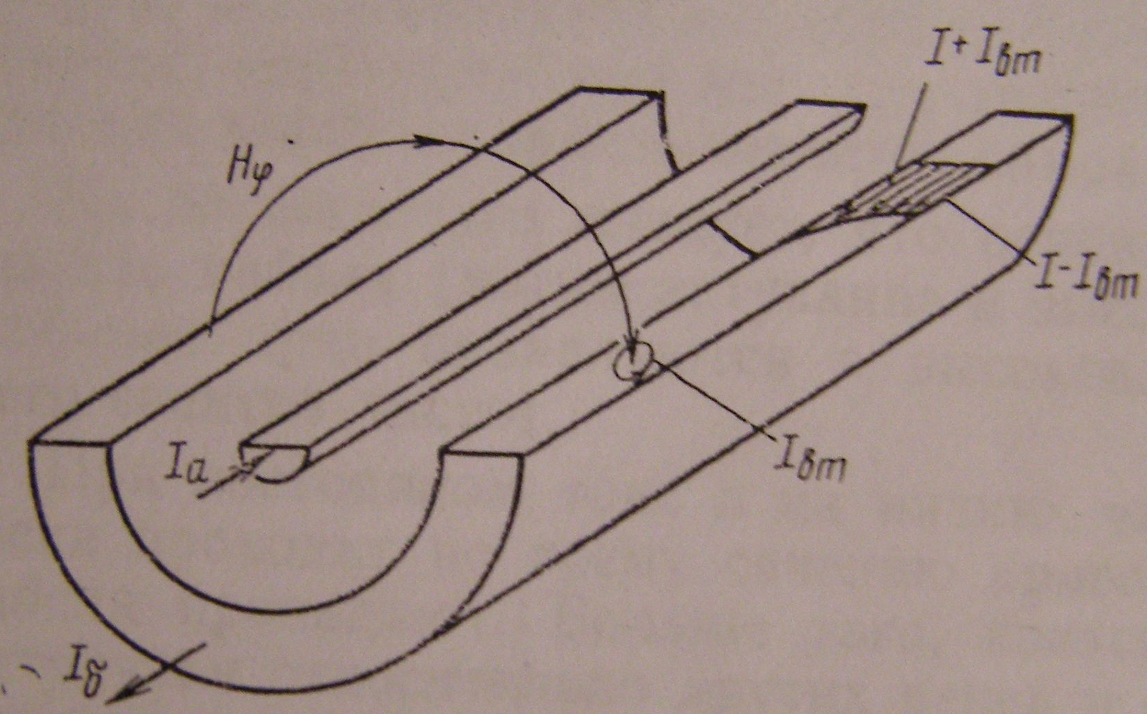 где r расстояние от центра полого проводника. Поэтому при определении внешних магнитных полей коаксиального кабеля параметр r для проводников а и б принимается одинаковый и исчисляется от центра проводников (нулевой точки).