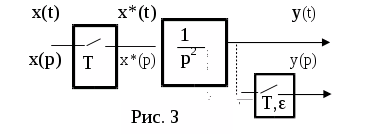 Пример 2. Рассчитать переходный процесс в заданной дискретной системе (рис. 3.), если x(t) = 1 (t).