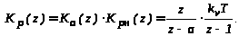 Определим переходную функцию дискретной системы. Дискретное преобразование единичного воздействия x(t) = 1 (t) равно x(z) = z/(z-1).