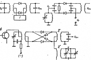 Конструктивно схема состоит из диода и двух колебательных контуров, один из которых настроен на частоту сигнала, а второй на частоту гетеродина.