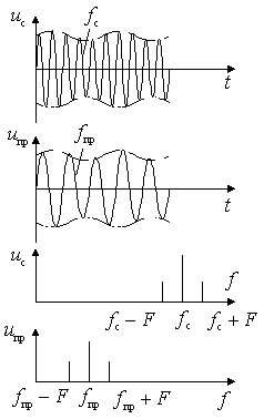 В данном случае положение боковых полос сигнала относительно несущей частоты после преобразования не меняется (неинвертирующее преобразование частоты).
