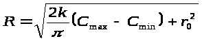 Для расчета радиуса пластины, обеспечивающей прямоемкостную зависимость емкости, использую формулу: