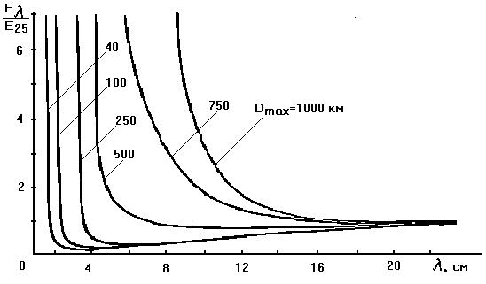 Для оценки длинны волны РЛС, обратимся к рисунку 11.1 [1], на котором приведены зависимости требуемой энергии передатчика от длины волны.