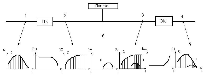 АЧХ участка СЛ, следующего после ПУ,