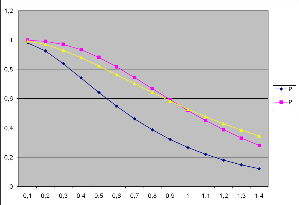 P`- вероятность безотказной работы системы с повышенной надежностью