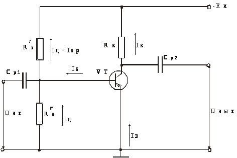 Сопротивление R">Б >делителя включено параллельно входному сопротивлению транзистора. Кроме того, пренебрегая малым внутренним сопротивлением источника питания, можно считать, что R'>Б> и R">Б> включены параллельно друг другу. Поэтому делитель, образованный резисторами R'>Б> и R">Б >должен обладать достаточно большим сопротивлением (порядка нескольких кОм). В противном случае входное сопротивление каскада окажется недопустимо малым.