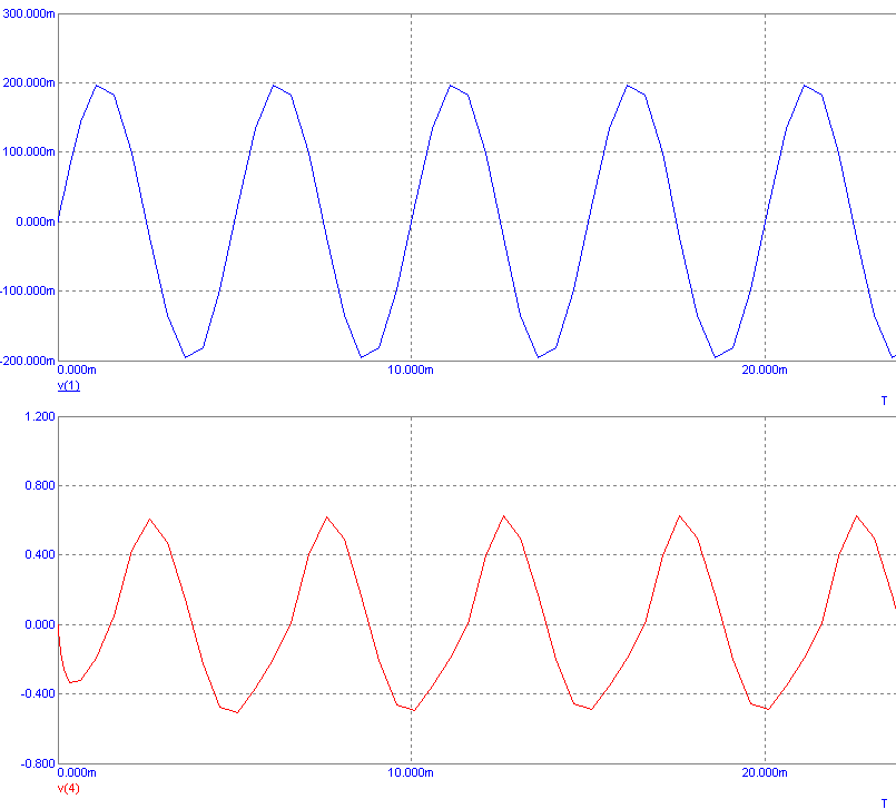 Полученные временные диаграммы для входного и выходного напряжений