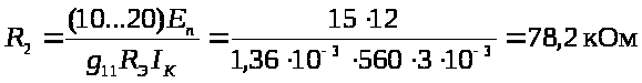 Находим значения сопротивлений резисторов смещения напряжения на базе транзистора: