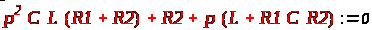 Поскольку схема содержит два накопительных элемента (C и L) в различных ветвях, данная цепь является цепью второго порядка. В ней возможны либо апериодический, либо колебательный режим. Для выяснения этого составим характеристическое уравнение и определим его корни.