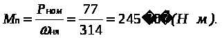ω>2> = P>2> / М>n> = 90 / 0,4642 = 195 с-1.