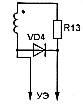 Вибираємо транзистор, що согласує, ГТ403А с параметрами: P>к.доп>=0,6(Вт). U>к.доп.>=30(В); I>к.мах.>=1,25(А); β>1>=20..60.