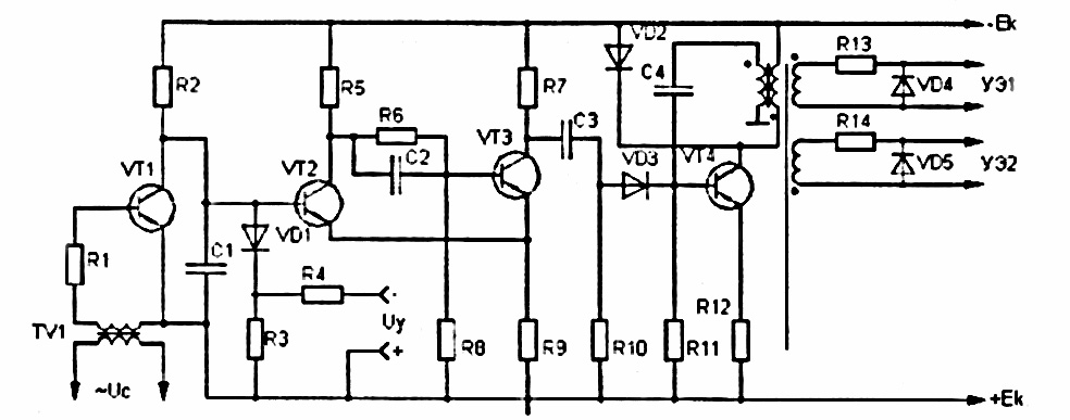 Виконаний випрямляч побудований на керованих вентилях (тиристорах), для керування якими використовуються система імпульсно-фазового керування. Її задача – подати на керуючі електроди тиристорів прямокутні імпульси з необхідним зсувом по фазі щодо самостійного включення вентиля.