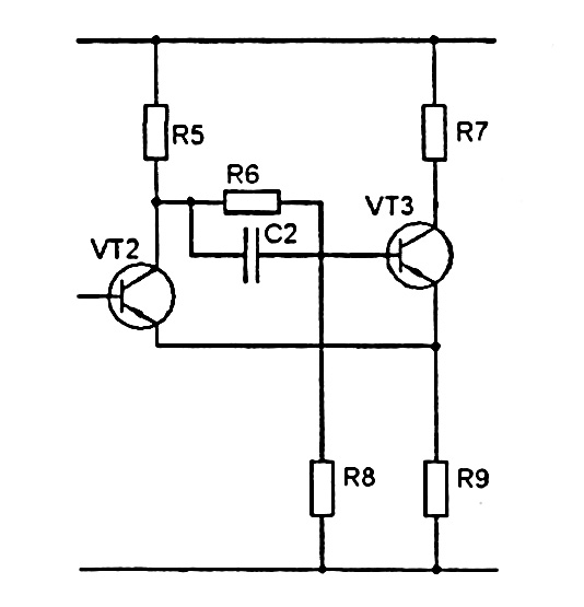 Обираємо транзистор типу КТ 203 Б з наступними параметрами: U>к.доп.>=30(В); I>к.доп>=10(мА); β=30-150; f>а>=5(мГц); U>е.б.>=15(В); P>роз.>=150(мВТ).