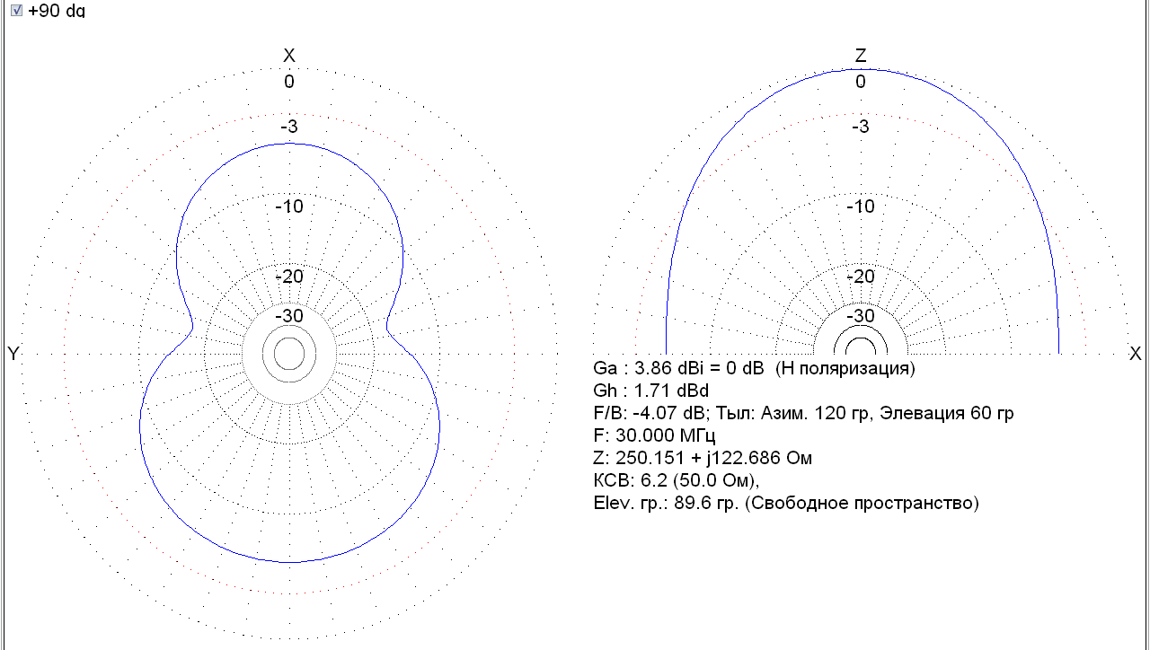 Геометричні розміри рамкової антени: 3,18x3,18 м; частота сигналу: 30 МГц.