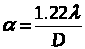 Теоретический угловой предел разрешения объектива в радианах, определяемый дифракцией света, вычисляют по формуле