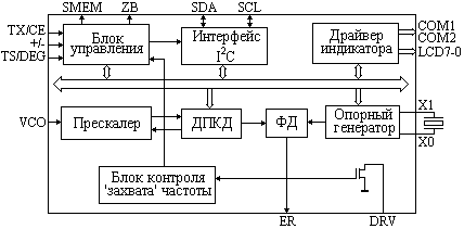 Структурная схема СЧ АК9601 приведена на рисунке ниже. Назначение выводов схемы приведено в таблице 1.