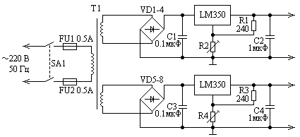 Ниже приведена схема источника питания.