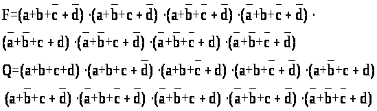 Совершенная дизъюнктивная нормальная форма (СКНФ) представляется логическим произведением дизъюнкций, каждая из которых содержит все переменные в прямом или инверсном виде не более одного раза. Входящие в произведение сомножители – дизъюнкции – называются макстермами или конституентами нулей.