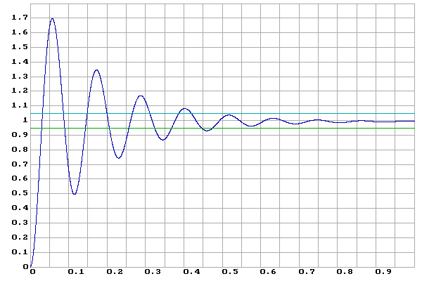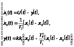 Для оценки времени регулирования t>p>>1> исходной системы по системе дифференциальных уравнений (3) построим переходный процесс: