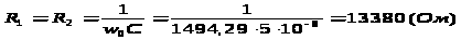 Задаём ёмкость конденсаторов C>1>=C>2>=10/f>n>=10/0,2=50 (нФ)
