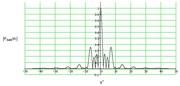Решетка синфазная, то есть токи всех излучателей синфазны (имеют одинаковую фазу).