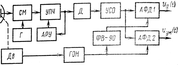 Рис.2. Функциональная схема пеленгатора с коническим сканированием